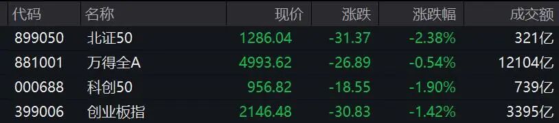 今日早盘,A股继续小幅震荡调整,截至午间收盘,创业板指、科创50、上证50、沪深300等指数均跌超1%。两市成交略有萎缩,但半日成交仍超过万亿元。