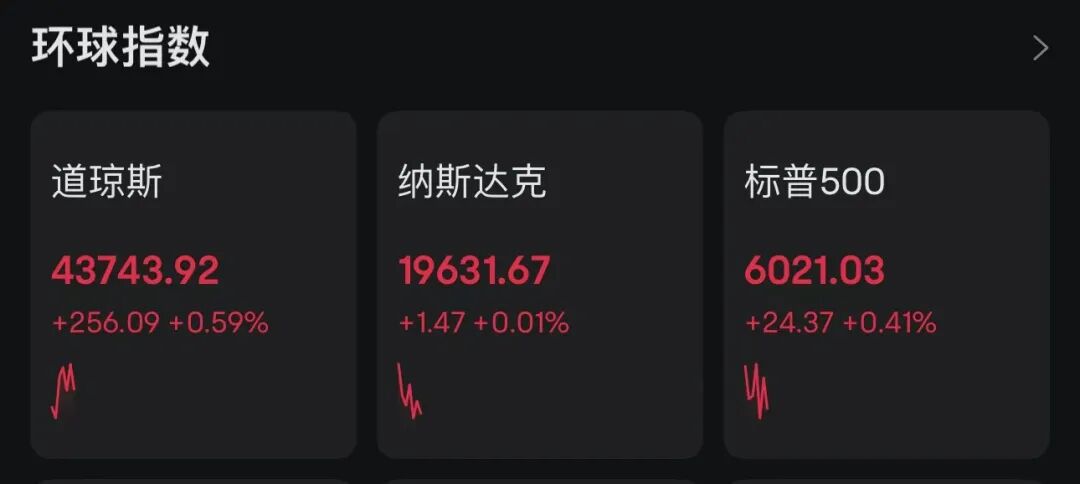 1月21日晚间,美股三大指数集体高开。截至发稿,道指涨0.59%,纳指涨幅回落,标普500指数涨0.41%。