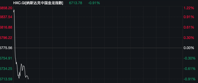 热门中概股跳水。纳斯达克中国金龙指数高开近1%后快速跳水,截至发稿跌幅接近1%。