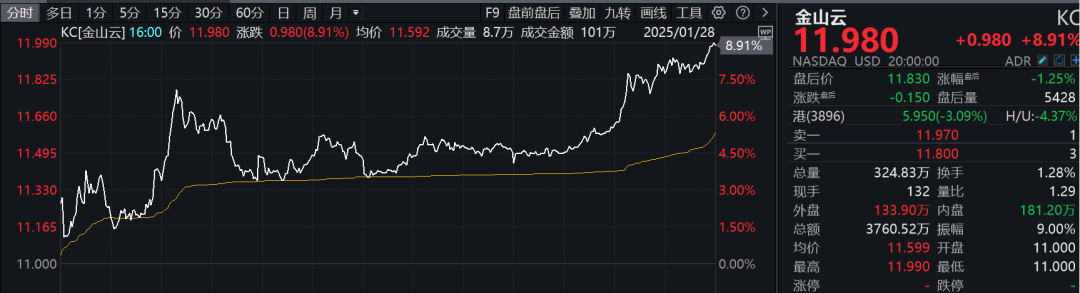 中国资产大爆发。热门中概股多数上涨,金山云涨近9%,好未来涨超7%。阿里巴巴、富途控股等涨超6%,百度、万国数据涨超3%,哔哩哔哩、携程网涨逾2%;贝壳跌超2%,新东方、理想汽车等跌逾1%。