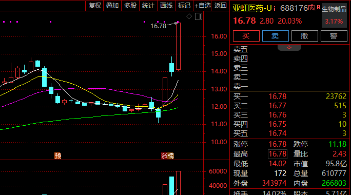 一款新药的获批上市,瞬间引爆了亚虹医药(688176)的股价。