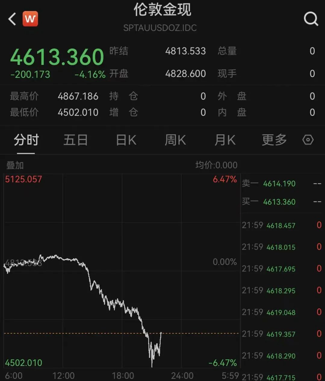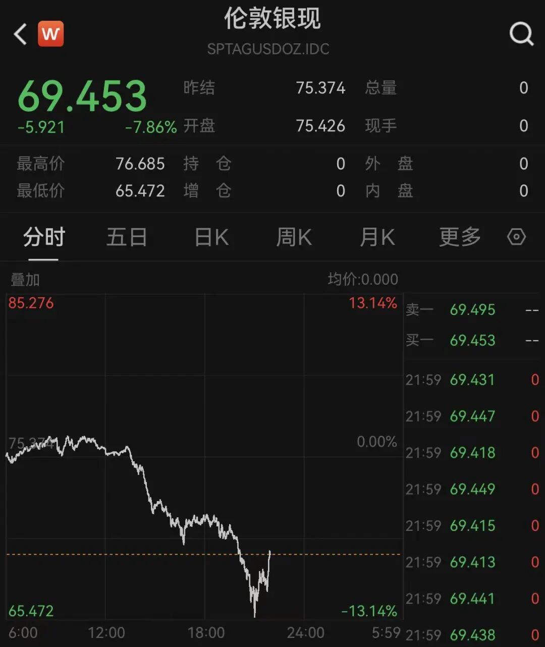 截至发稿,现货黄金跌逾4%,盘中一度跌至4500美元附近,现货白银更是大跌超7%,盘中跌破66美元。