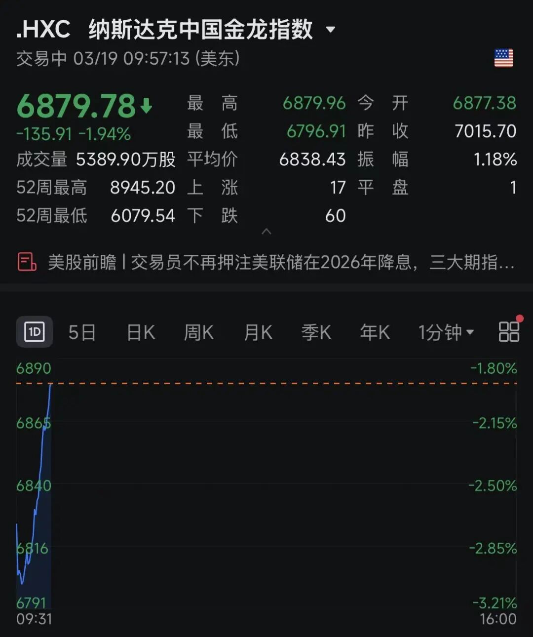 中概股也在开盘重挫的情况下直线拉升,截至发稿,纳斯达克中国金龙指数跌近2%,个股方面,阿里巴巴暴跌超8%。虎牙跌超7%,世纪互联、金山云跌逾5%。