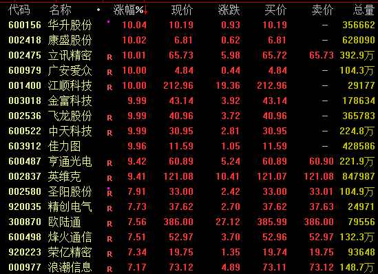 液冷服务器概念盘中走势强劲,截至收盘,立讯精密午后放量涨停,全日成交251.9亿元,成交额位居A股首位;江顺科技亦涨停,创历史新高;圣阳股份盘中涨停斩获8连板,但尾盘开板,收盘涨约8%。此外,英维克涨超9%,盘中涨停亦创新高。