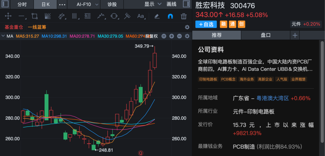 而最近几个交易日,胜宏科技A股又大幅上涨,今日收盘价为343元/股。这为港股开盘上涨留下了充足空间。