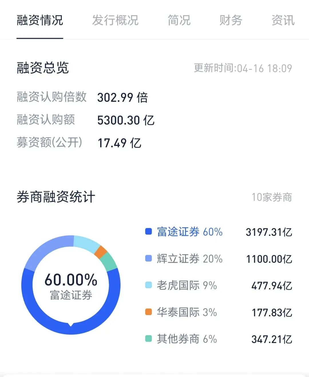 在公开发售部分,公司获得5300.3亿港元融资认购,融资认购倍数达到302.99倍。