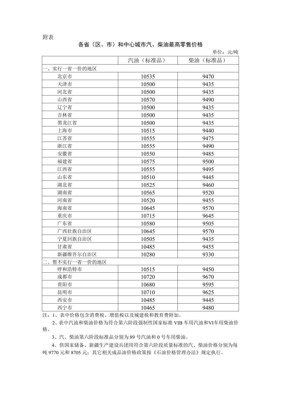 附:各省(区、市)和中心城市汽、柴油最高零售价格